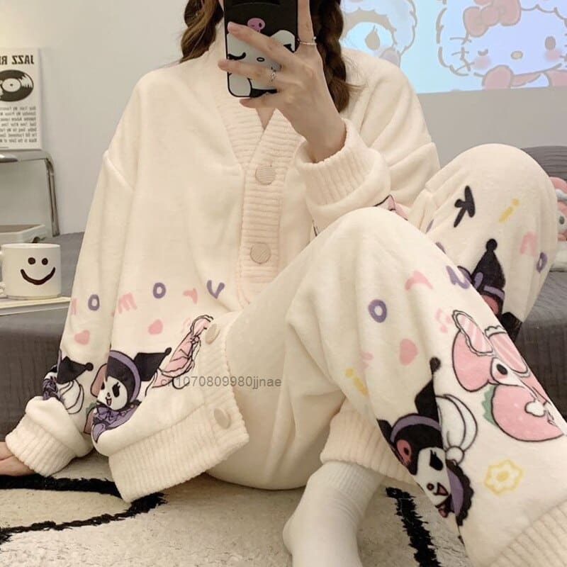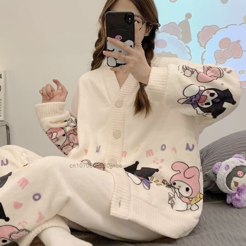 Surpyjama polaire à motif dessin en peluche pour femme_1